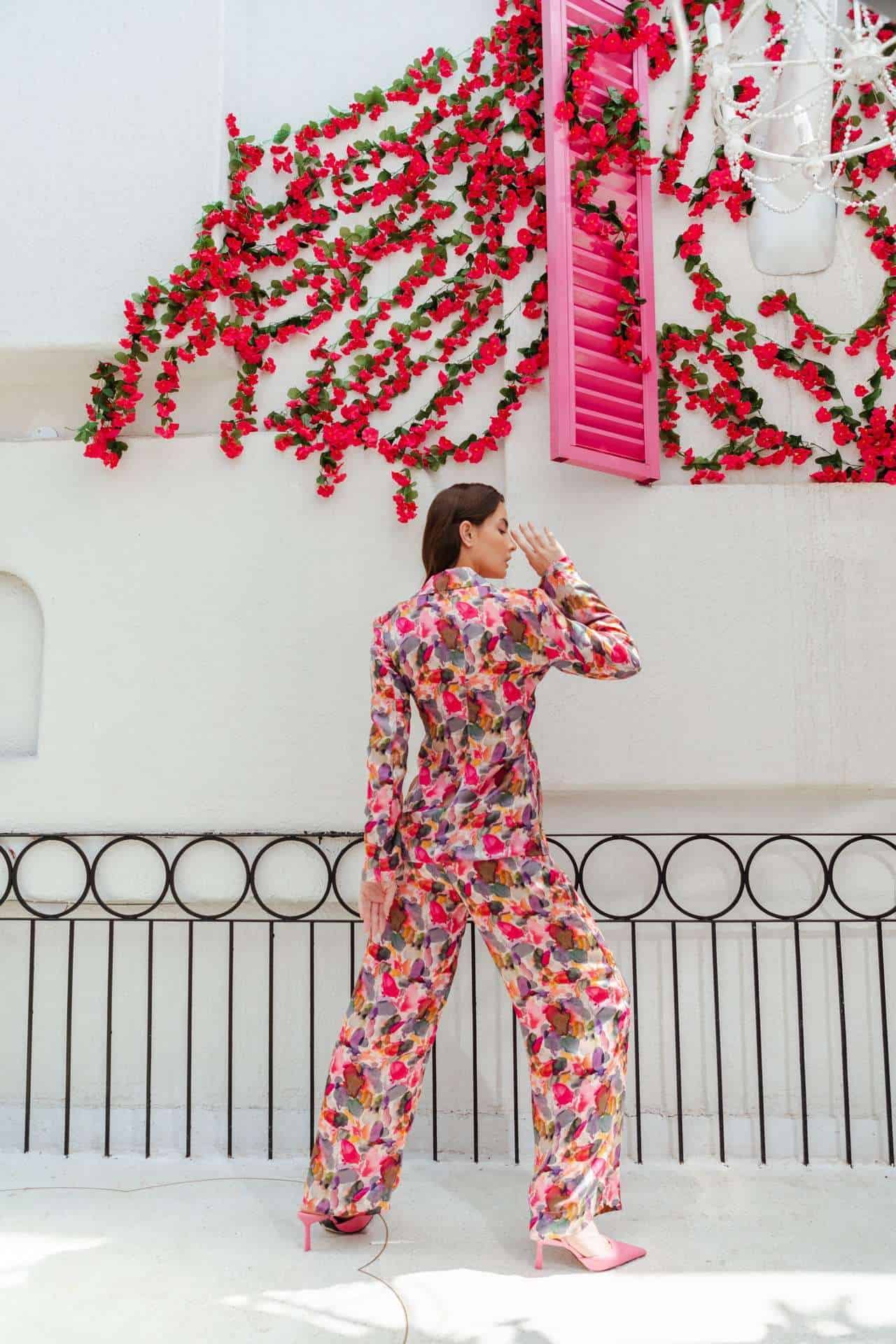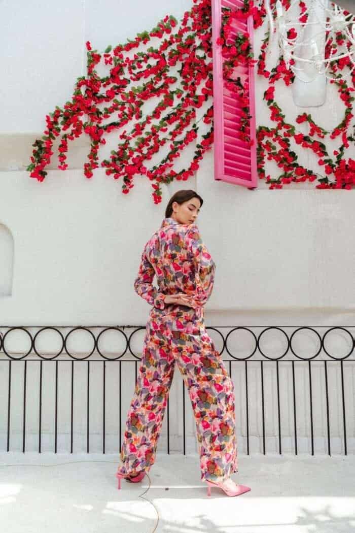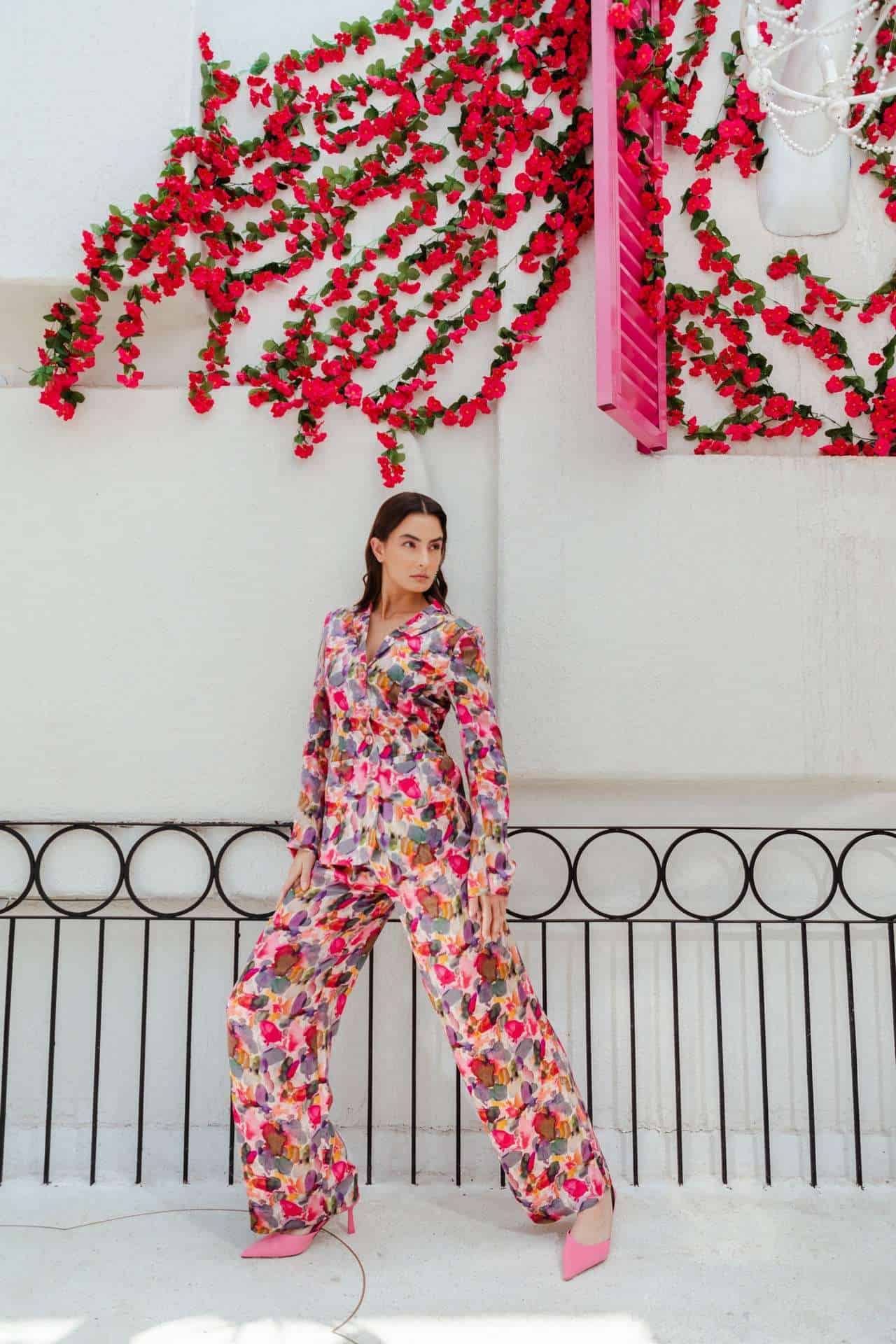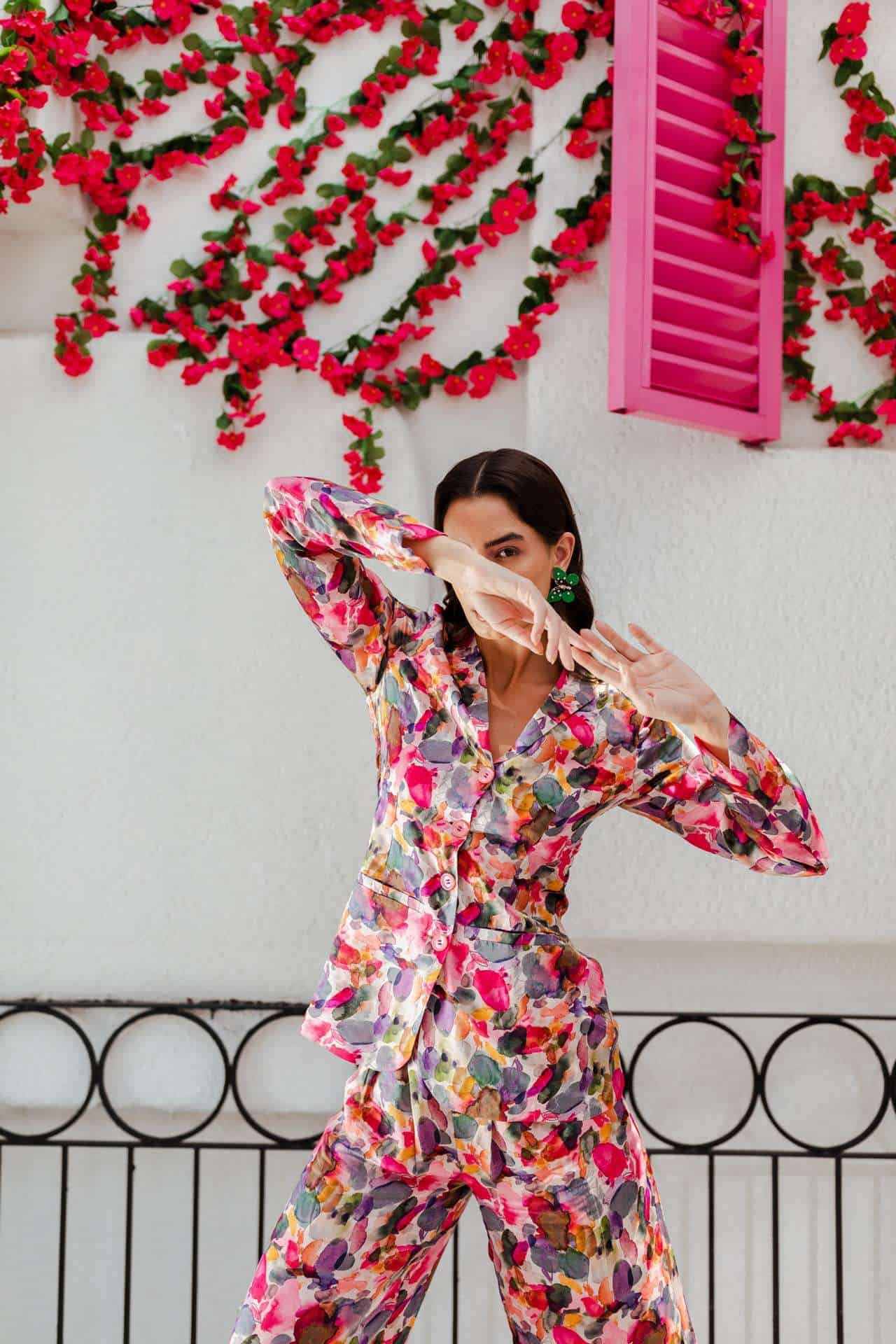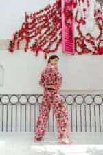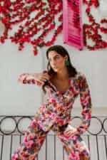 Amp up your floral game! This floral print blazer set in luxe Bemberg satin features comfort-fit pants and a stylish blazer with pockets. Whether you’re headed to a brunch or a boardroom, this set blends class and comfort effortlessly.