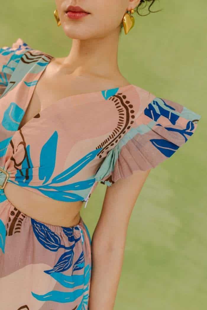 Vintage Sleeves, Buckle On Waist, Digital Print, Padded