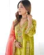 Crafted in a pastel shade, this kurta set features detailed handwork and a winter-appropriate design. Ideal for formal and festive occasions.