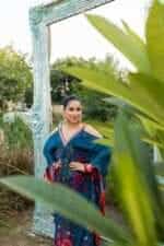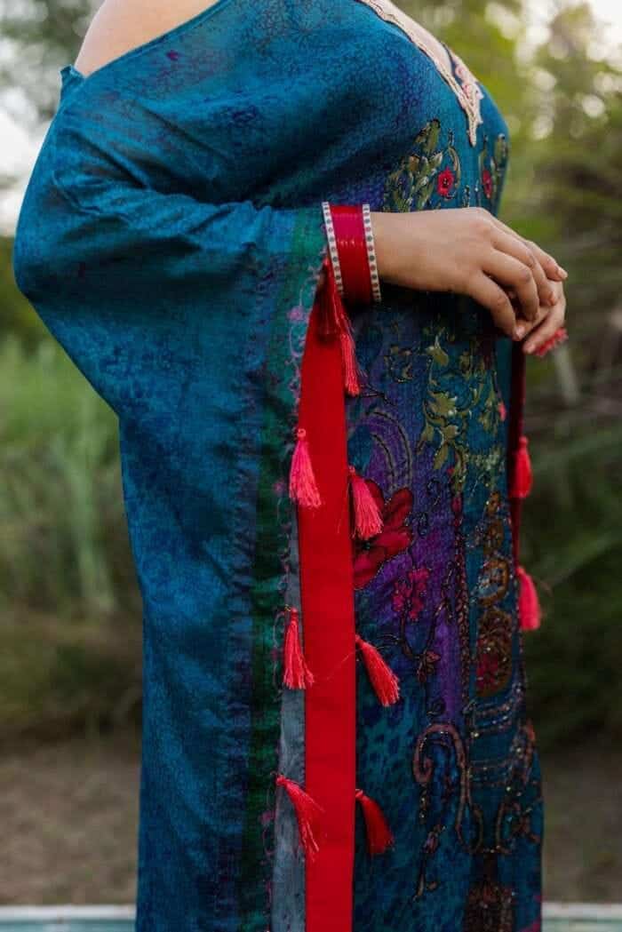 v neck neck with Lace Detailing, Cutdana Hand work to Enhance Print on front panel, neck length 9, length 55, Comes with slip