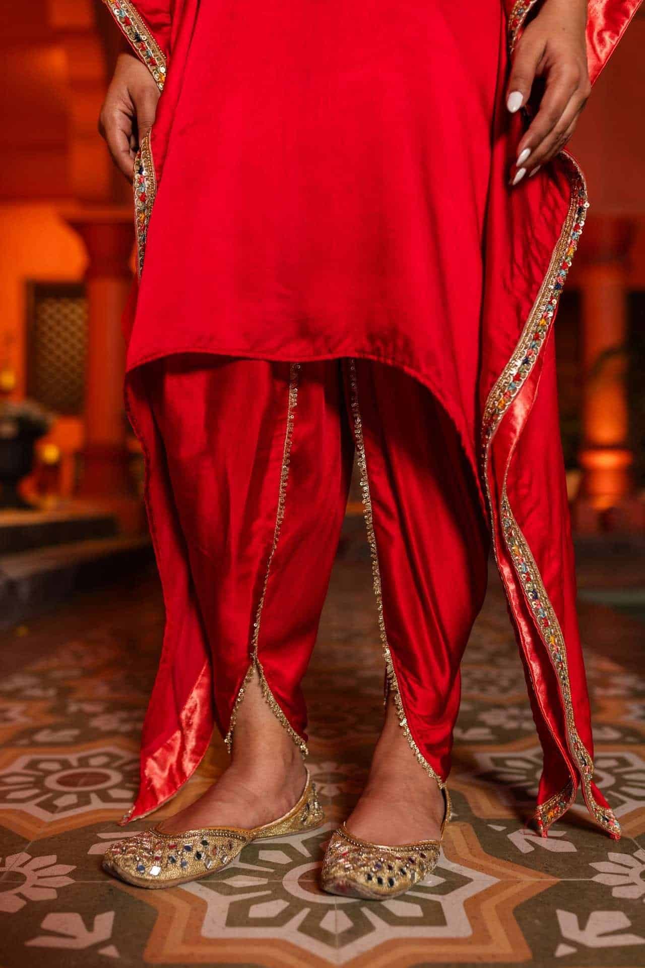 Decollete Neck with lace Detailing on patch, C cut Kaftan comes salwar with lace Detailing, pant length 36