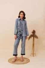 Make a statement at any formal event with the Classic Co-ord Set—a regal and sophisticated ensemble adorned with exquisite embroidery and a delicate organza flower detail. Crafted from a soft cotton blend, this luxurious set combines elegance and comfort, making it an essential addition to your wardrobe.