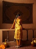 • Color: Mustard Gold • Work: Hand embroidery • Components: Kurta, Pants & Dupatta